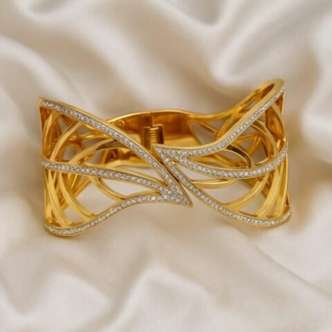 Luxury Gold CZ Open Cuff Bracelet – Designer Women’s Statement Bangle Designed Isabel Jeqwels