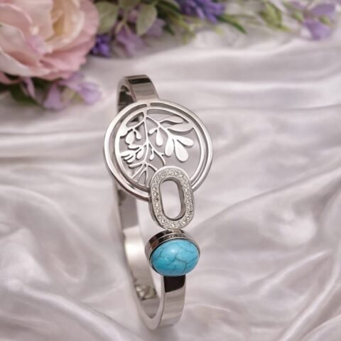 Silver Open Bangle with Turquoise Stone – Stylish Women’s Bracelet Designed Isabel Jewels