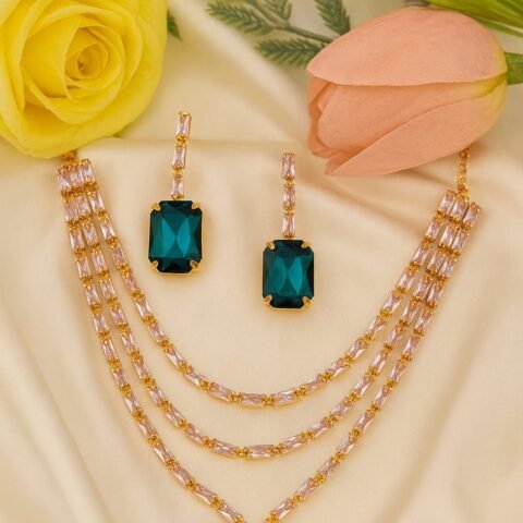 Emerald-Green Crystal Necklace & Stud Earrings Set for Women designed Isabel jewels