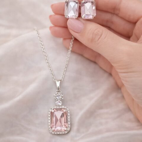 Elegant Pink Crystal Necklace & Stud Earrings Set designed Isabel Jewels