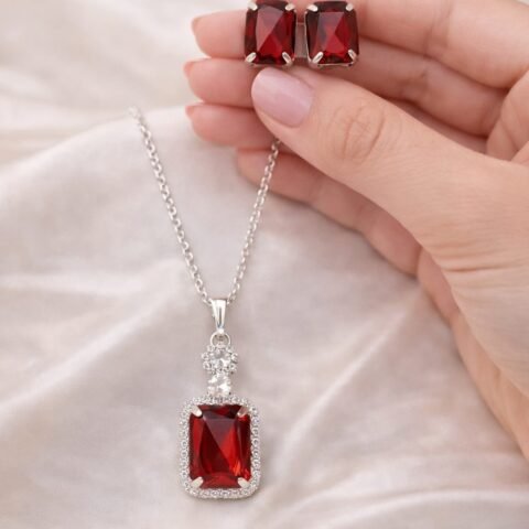 Elegant Red Crystal Necklace & Stud Earrings Set designed Isabel jewels