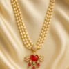Enhance your festive and bridal look with this stunning 8-layer pearl beads long necklace, beautifully crafted with red, green, and gold accent beads for a rich traditional finish. Perfect for weddings, engagements, festivals, and cultural events, this women’s long necklace adds elegance and grandeur to any outfit. A top choice for those searching for layered bead necklaces, traditional South Indian jewellery, and multi-string pearl necklaces.
