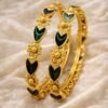 Designed in a statement temple jewellery style, these bangles showcase detailed patterns inspired by classical Indian artistry, making them ideal for women searching for heavy gold bangles, bridal gold kada, or traditional antique bangles. Their solid look and premium finish make them perfect to pair with silk sarees, bridal sets, and ethnic wear.