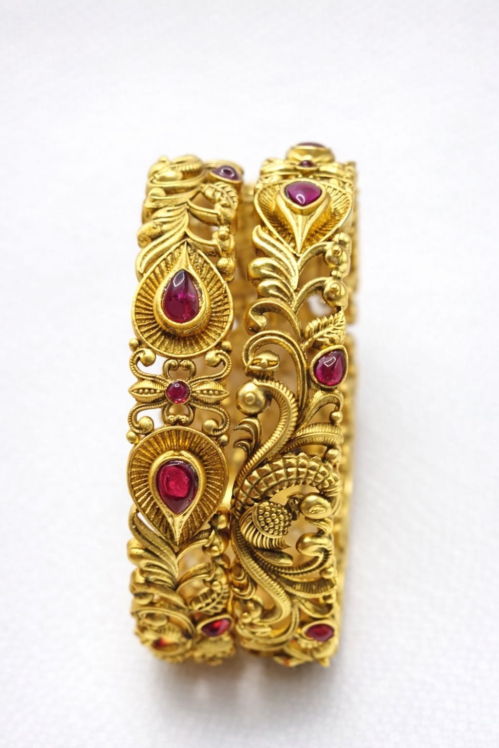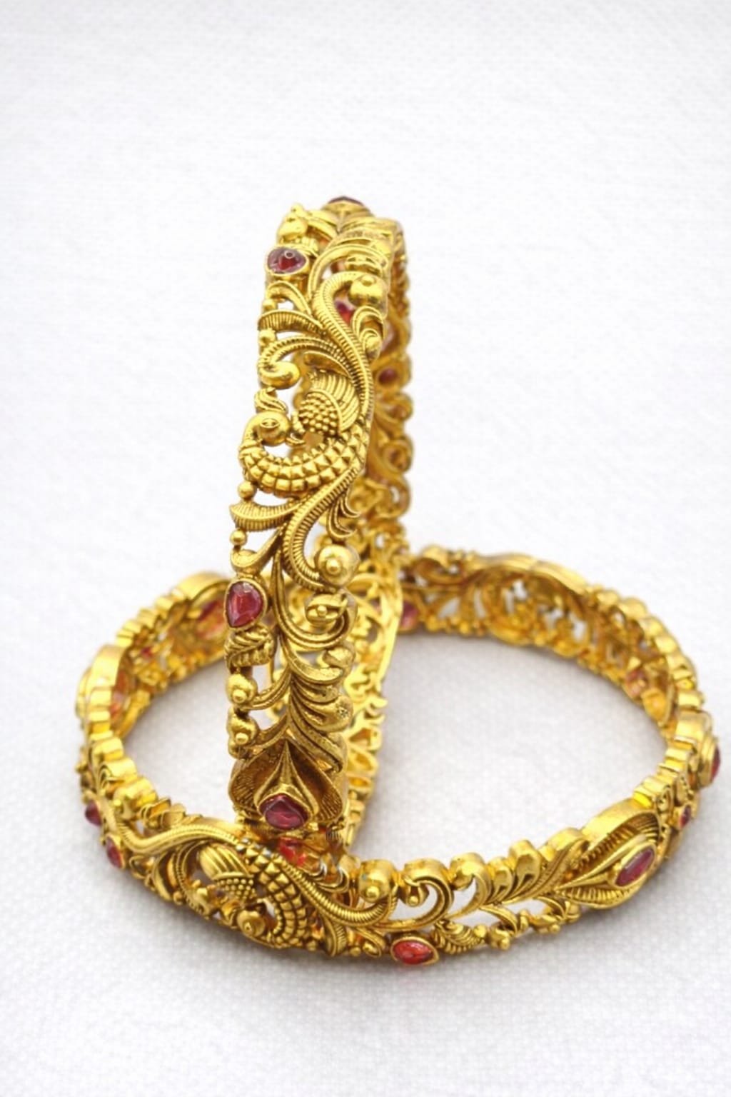 Antique Temple Gold Bangles with Ruby Stones – Size 2.6 designed Isabel Jewels