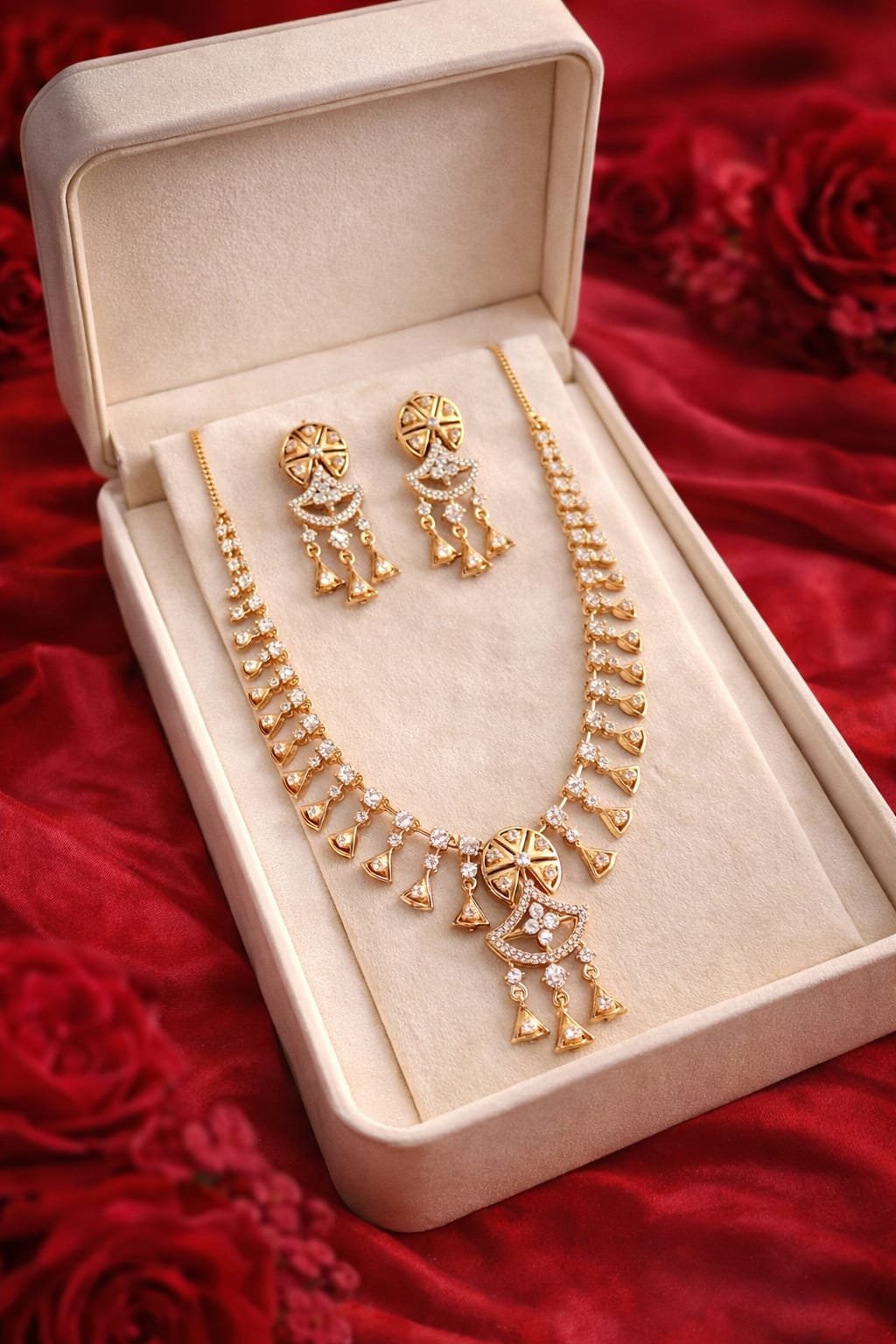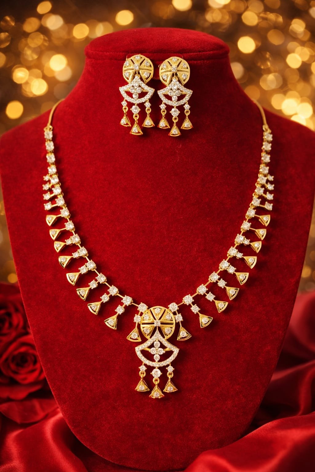 Diamond Style Gold Necklace Set with Matching Earrings – Bridal & Party Wear Jewellery designed Isabel Jewels