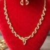 This beautiful gold necklace set for women features a delicate leaf design pattern enhanced with sparkling diamond-style stones, creating a graceful and luxurious look. The sleek, lightweight chain is paired with matching drop earrings, making it perfect for both modern and traditional styling.