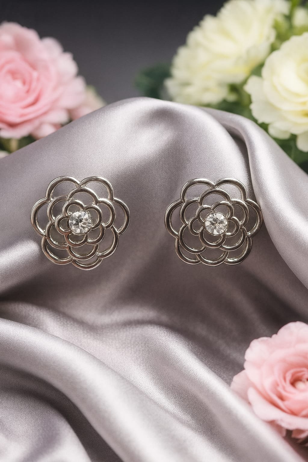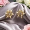 These elegant silver floral stud earrings feature a beautifully layered flower design with a sparkling crystal center stone. The open-petal pattern gives a modern, lightweight feel while maintaining a timeless feminine charm. Perfect for daily wear, office outfits, parties, and gifting, these earrings add a subtle shine that complements any look.