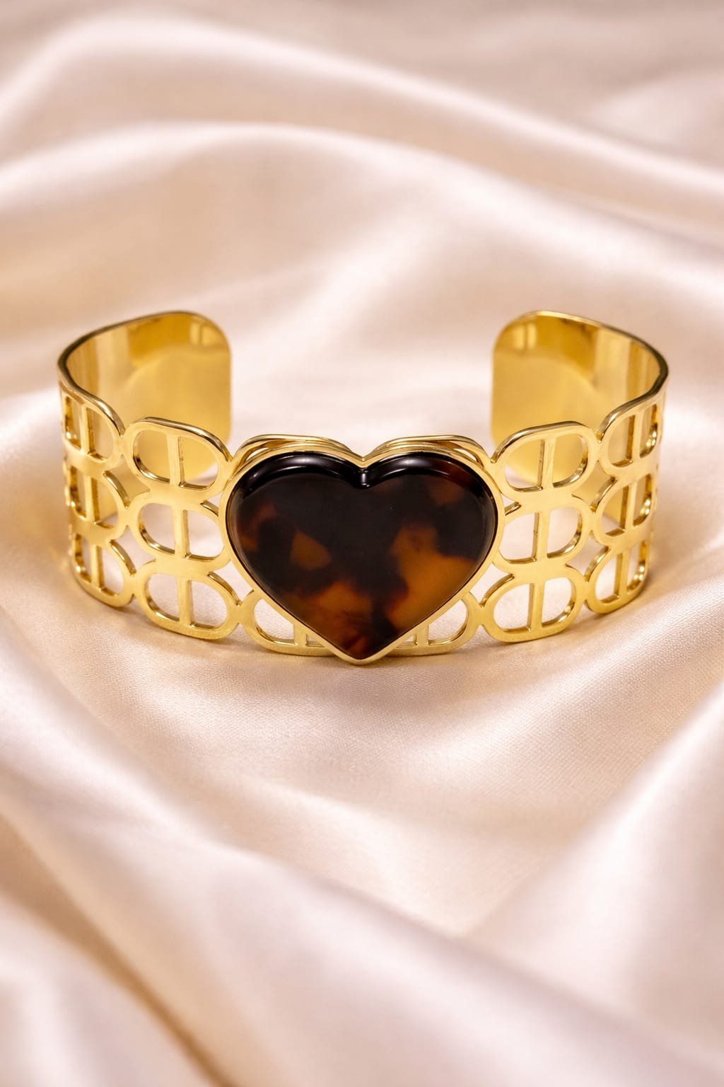 Gold Heart Cuff Bracelet – Trendy Women’s Fashion Statement Bangles Designed Isabel Jewels