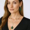 This elegant green teardrop crystal necklace with matching earrings features a sparkling diamond-cut chain that adds a luxurious touch. Perfect for party wear, wedding jewellery, evening looks, and festive outfits, this stylish statement necklace set is one of the most searched and loved pieces online for women who want a classy, modern style.