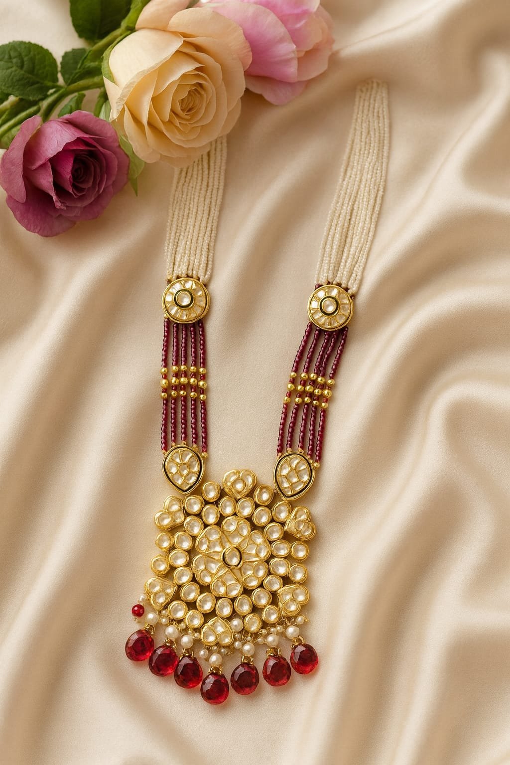 Luxury Kundan Necklace With Pearls & Red Stones – Bridal Jewellery Description designed Isabel Jewels