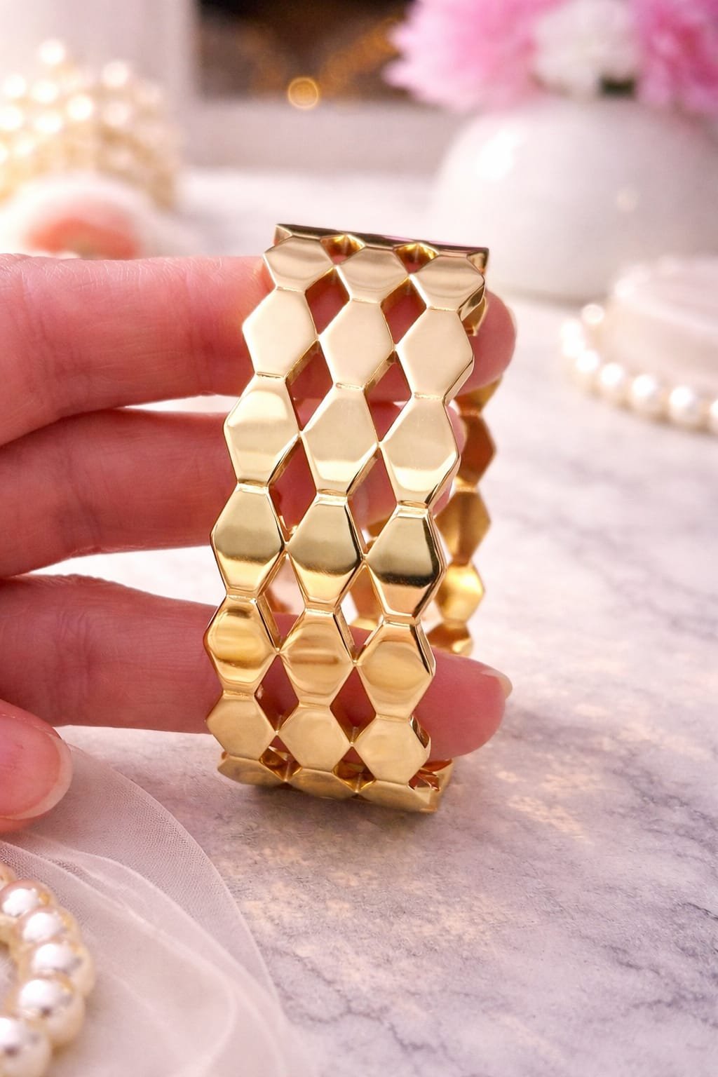 Matte Gold Cut-Out Bangles – Trendy Women’s Fashion Bangles Designed Isabel Jewels