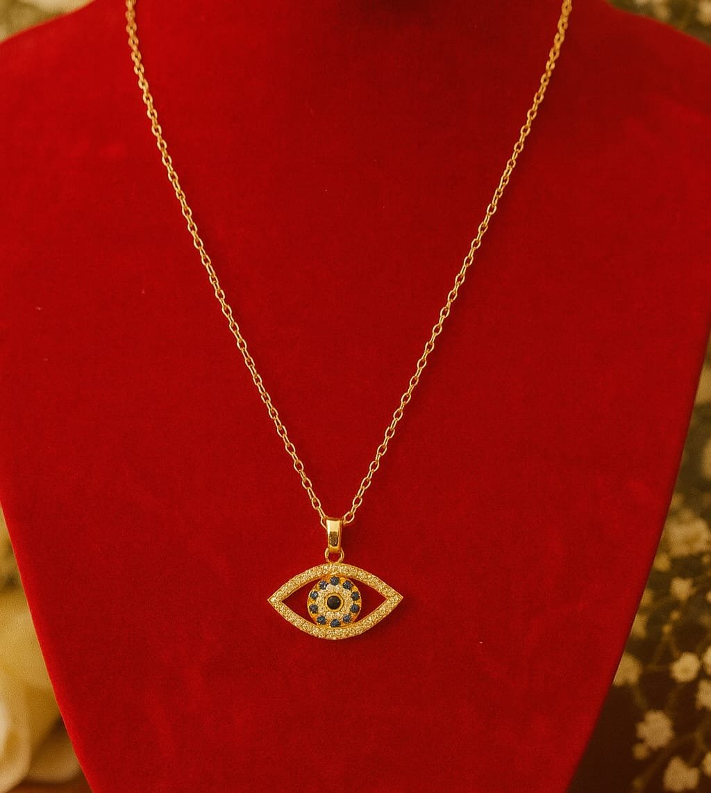 This stunning rose gold pendant necklace features a beautifully crafted evil eye design, embedded with sparkling blue and white stones. Known for its stylish look and symbolic meaning, this necklace is one of the most searched and trending fashion jewellery pieces online.