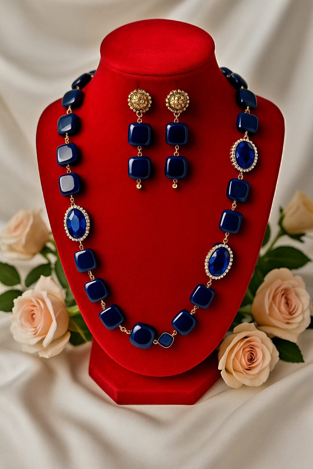 Royal Blue Stone Beaded Necklace for Women – Premium Party Wear Jewellery Designed Isabel Jewels