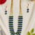 A stunning handcrafted green–blue triple-layer necklace paired with matching pearl accent earrings. Perfect for weddings, parties, and elegant occasions.