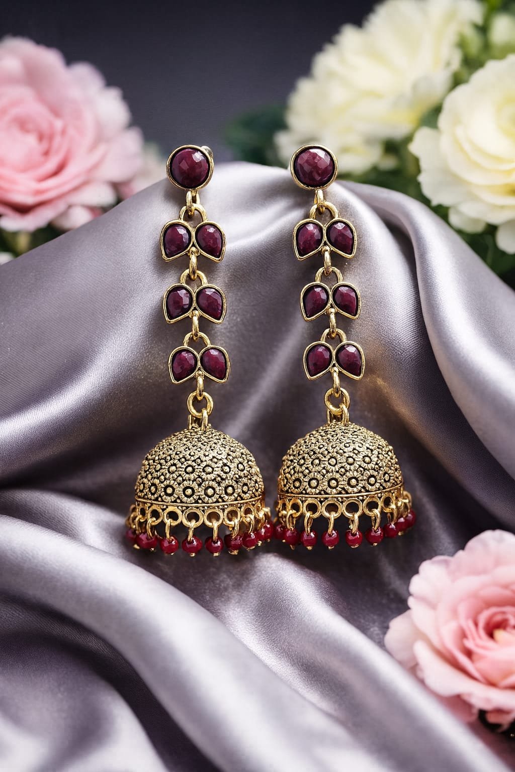 Perfect for weddings, parties, festivals, and traditional celebrations, these earrings pair wonderfully with sarees, lehengas, Anarkali’s, and other ethnic outfits. Their lightweight design makes them comfortable for long wear, while the bold maroon accents bring a striking pop of colour. A perfect gift for her for festive seasons, bridal wear, or special occasions.