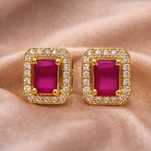 ✨ Gold Plated Ruby-Colour Stud Earrings | Classic Halo Design from Isabel Jewels ✨