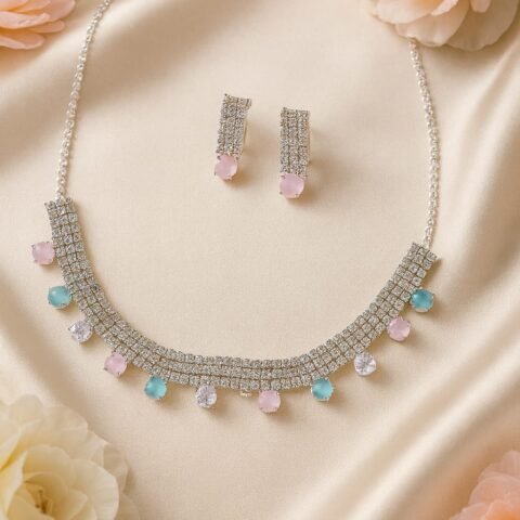 Kids Diamond Look Necklace & Earring Set – Cute Pastel Stone Jewellery | Most Searched Kids Accessories / designed Isabel Jewels